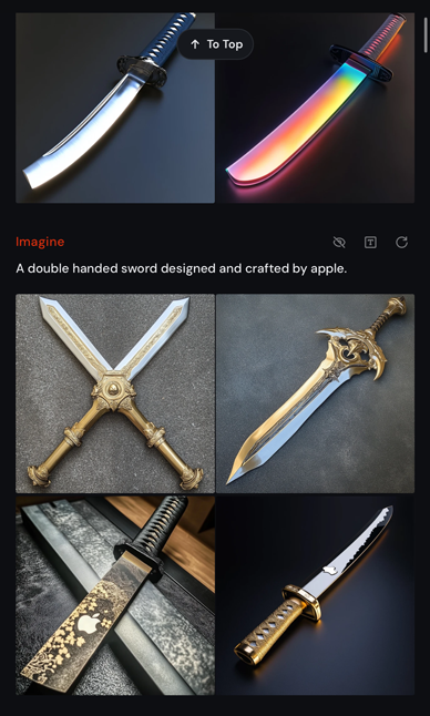 ביקשתי מבן-זוגי שיג׳נרט לי תמונות AI של חרב כזו, קיבלנו בעיקר חרבות עם לוגו התפוח. היתה גם תמונה נהדרת של שתי חרבות מחוברות במרכז…